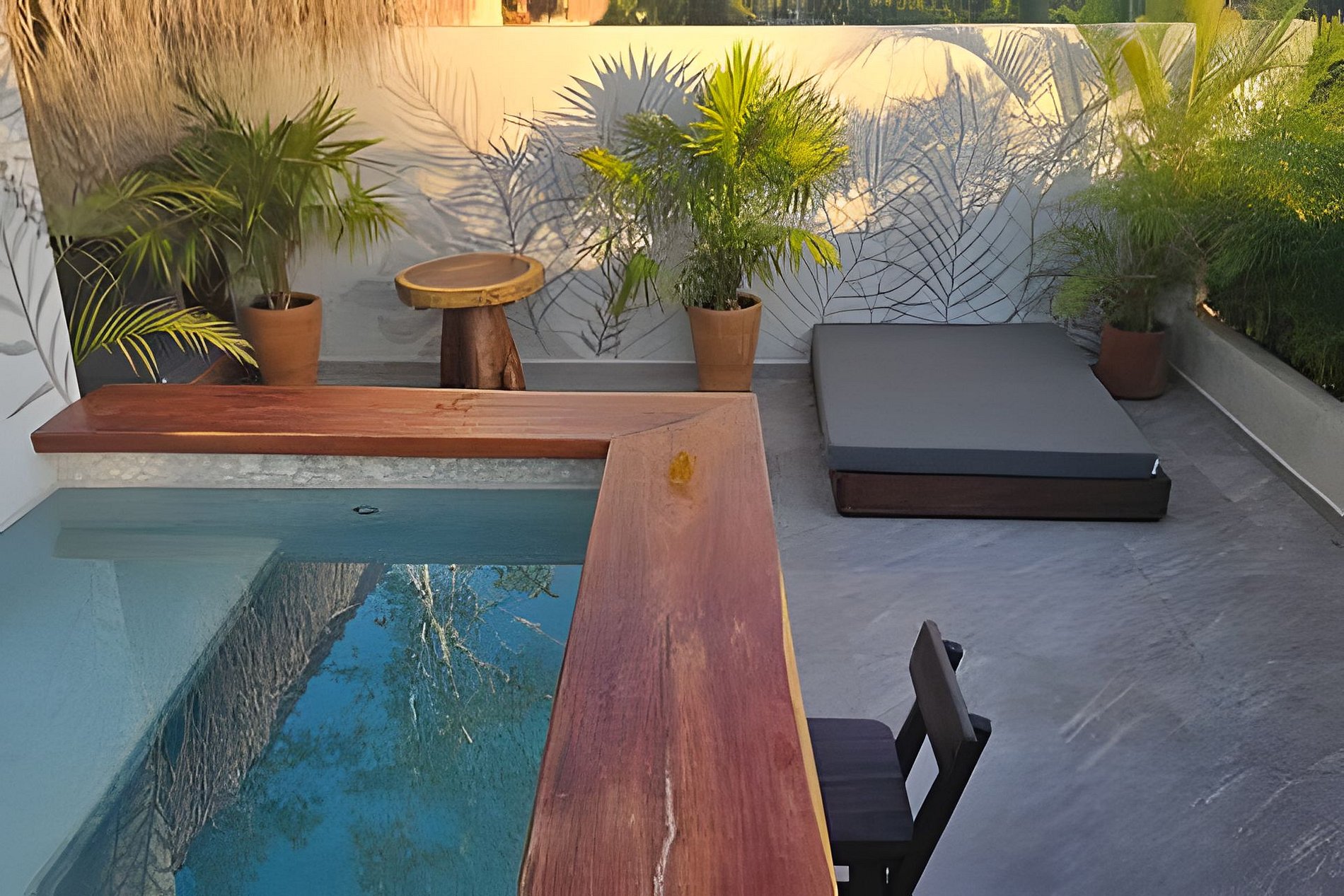 Hermoso departamento de acabados de lujo para los gustos más exigente. Pensado para que tengas una estadía memorable en Bacalar. Descubre todos los rincones insta-grameables que hemos pensado para ti. CasaTiago es una propiedad recientemente construida y diseñada por @santiagopgm que consta de 3 espacios independientes y una terraza compartida con alberca. Cada unidad esta pensada para 2 personas y un máximo de 4 -Departamento planta baja ( 60 m2) -Suite residencial (33m2) ( -Estudio Zen (31m2) Cada espacio es privado y esta totalmente equipado para la máxima comodidad La terraza cuenta con cómodos sillones , camastro, mesas y alberca con barra para que disfrutes hermosos atardeceres cuando regresas de la laguna Casa unidad es privada y sólo el área de la terraza de comparte. Si rentas el departamento de planta baja tienes espacio para guardar un automóvil o moto ( si rentas los estudios igualmente hay lugar para estacionar en la puerta) Estaremos disponibles en todo momento a los medios de contacto para ayudarte en lo que necesites