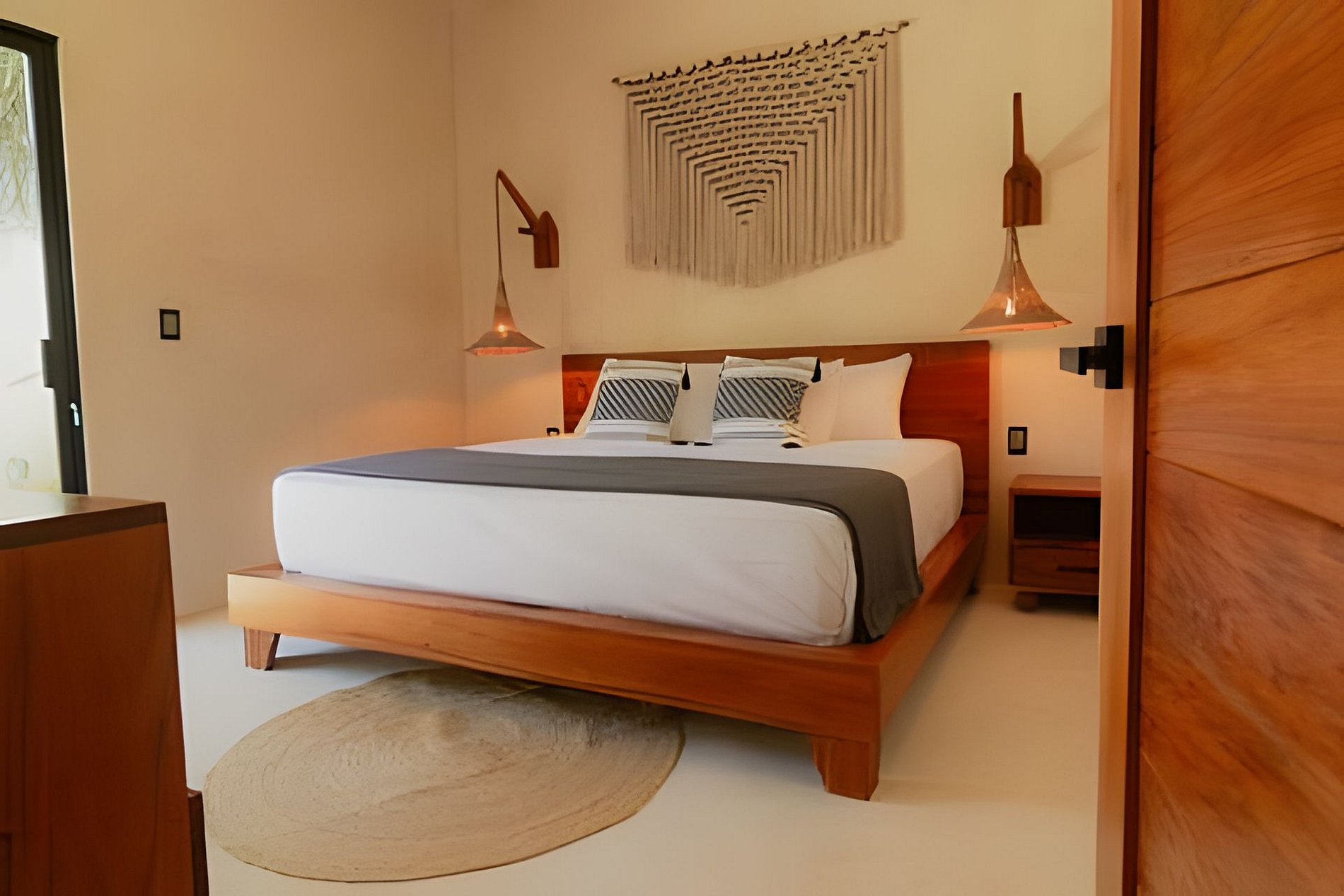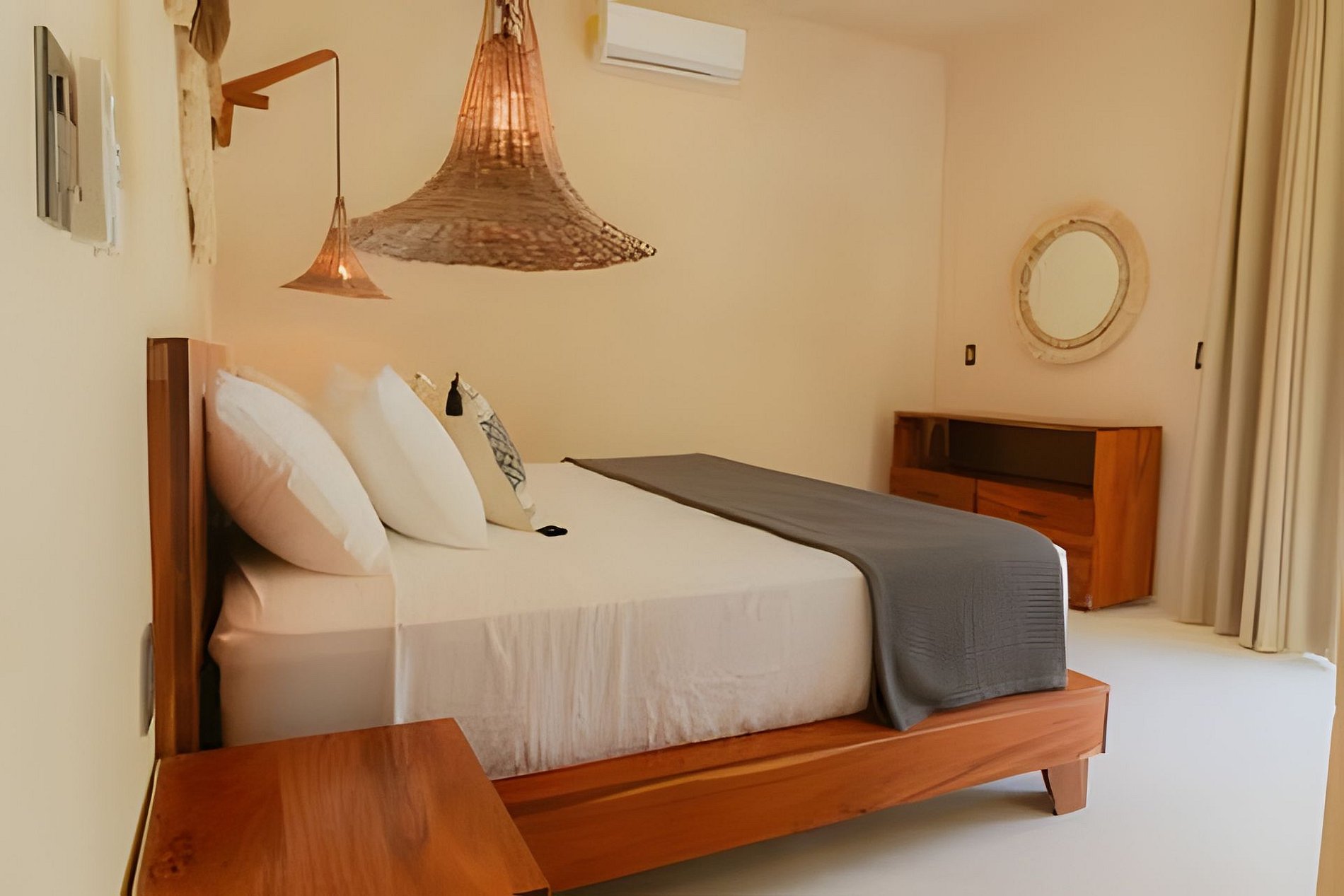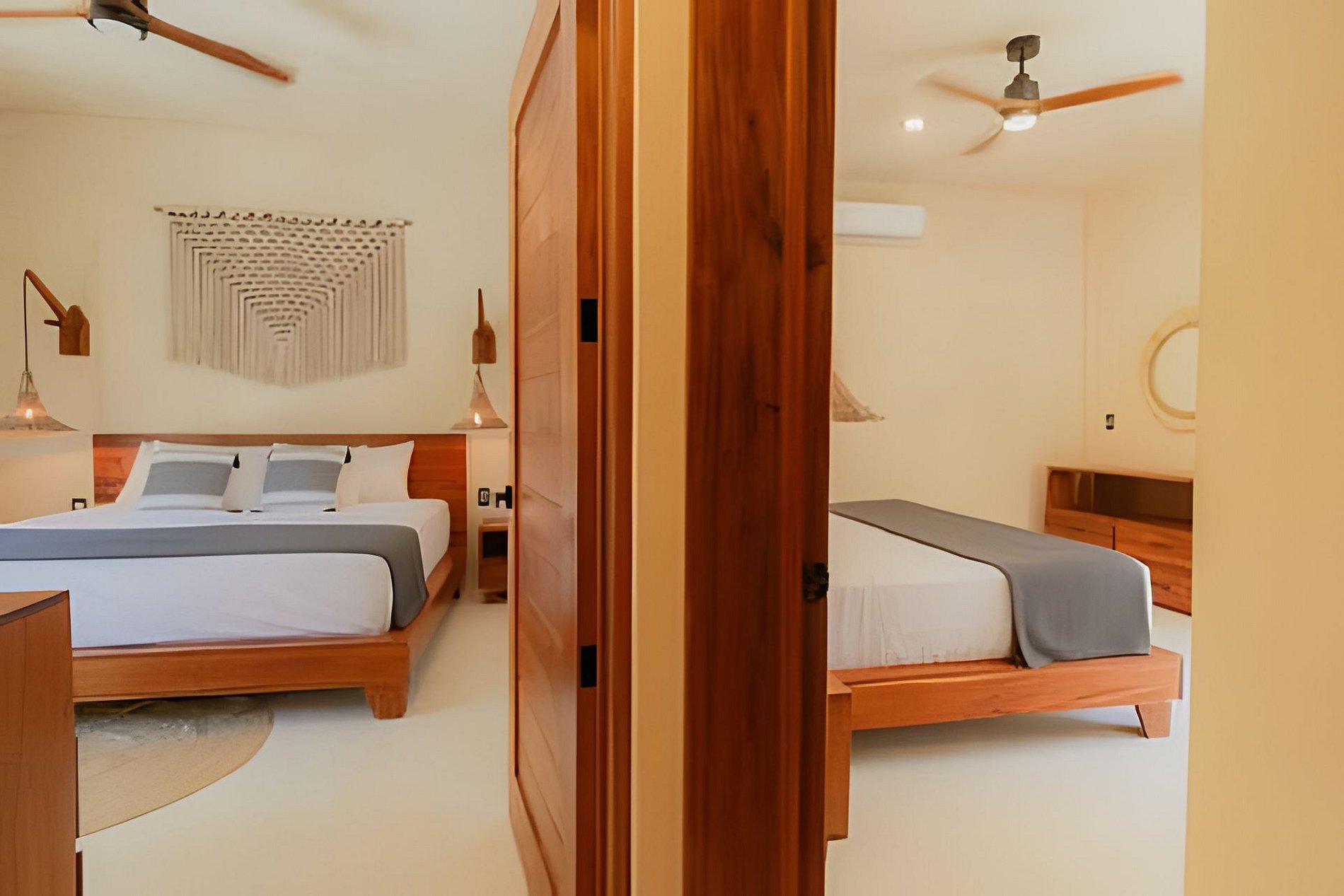 El departamento se encuentra en planta baja dentro de un edificio de reciente construcción. Cuenta con espacios amplios, buena ventilación y distribución funcional. Las habitaciones están equipadas con camas King para mayor comodidad. La alberca privada permite disfrutar el espacio sin compartir áreas con otros huéspedes.