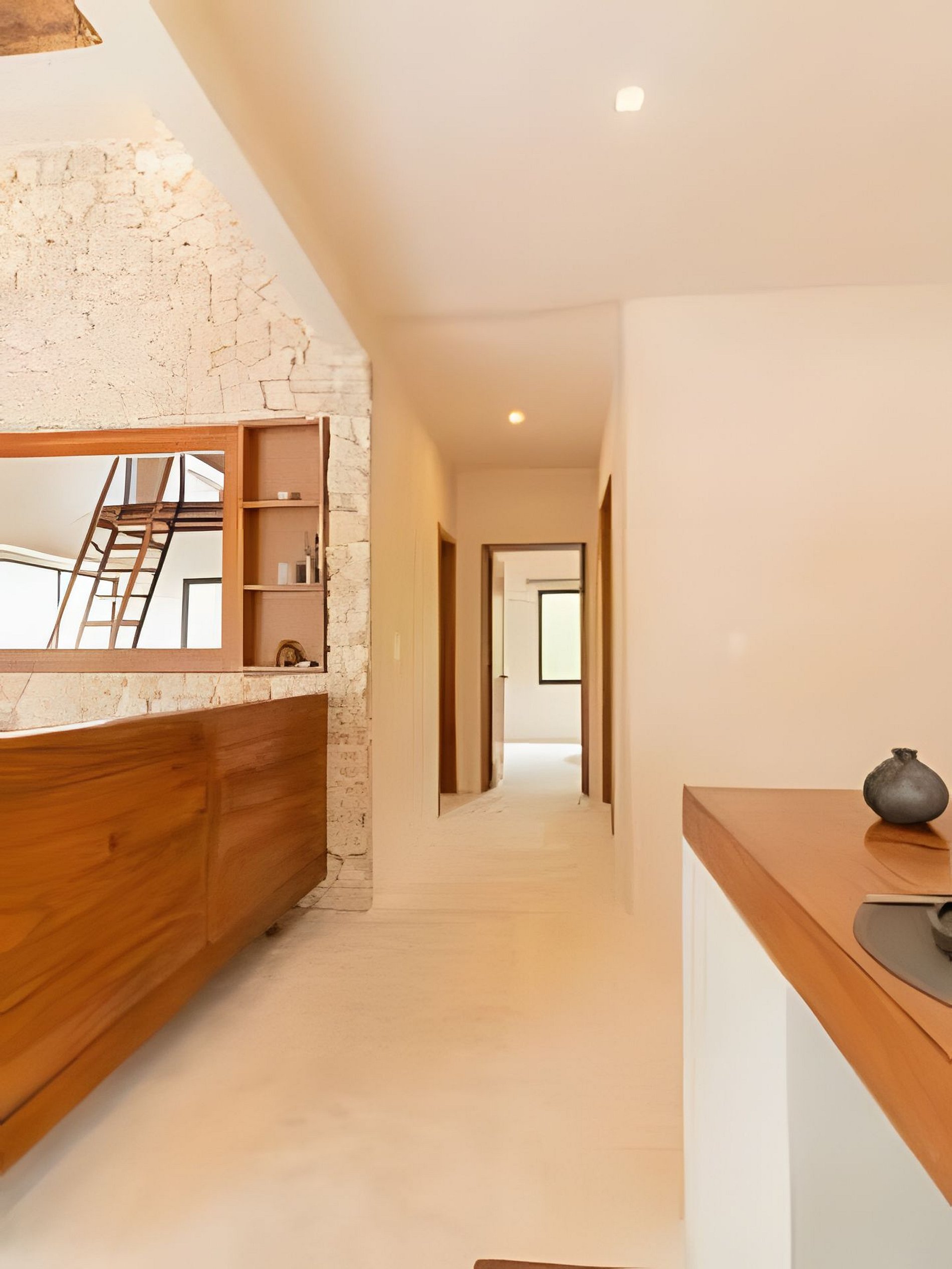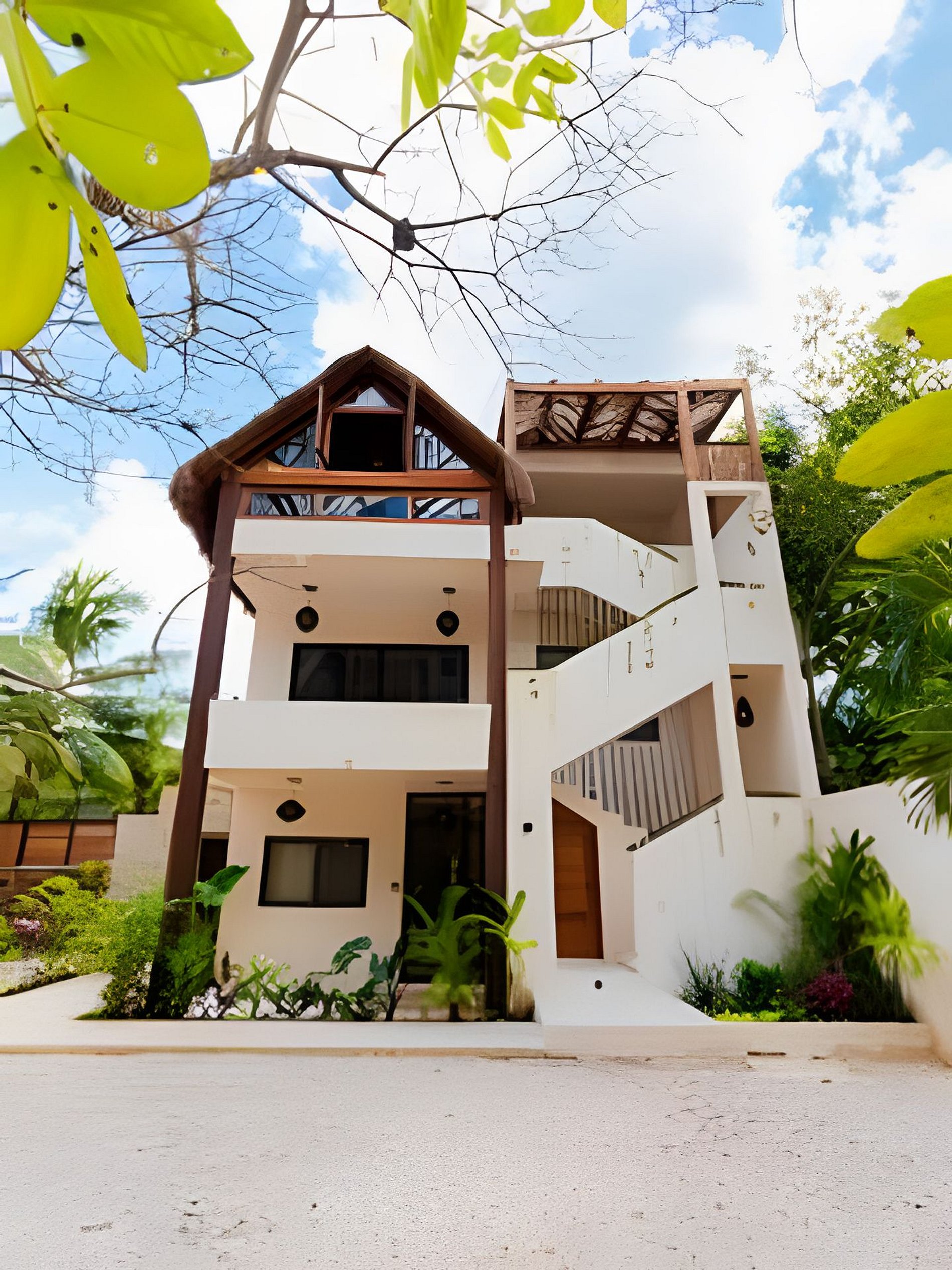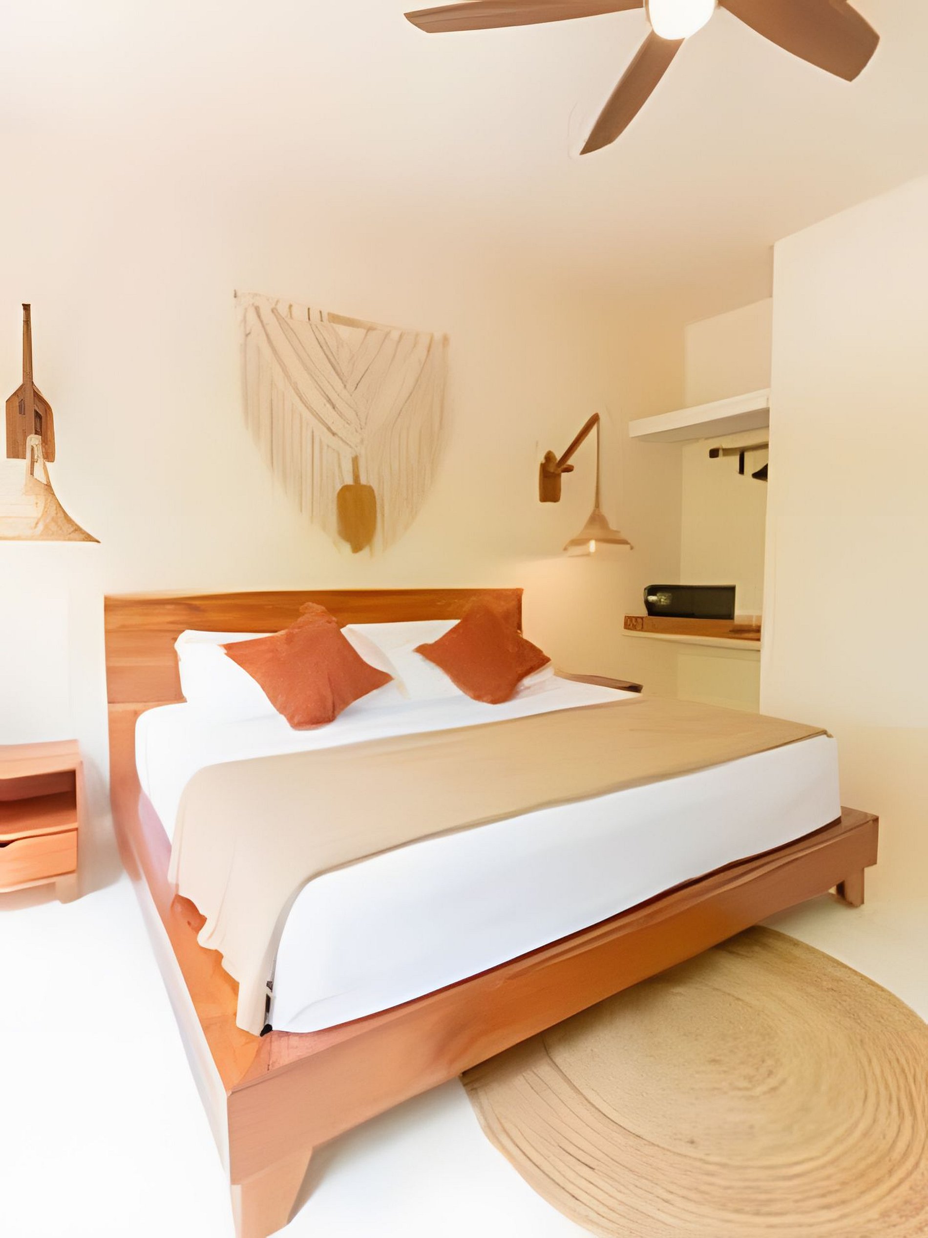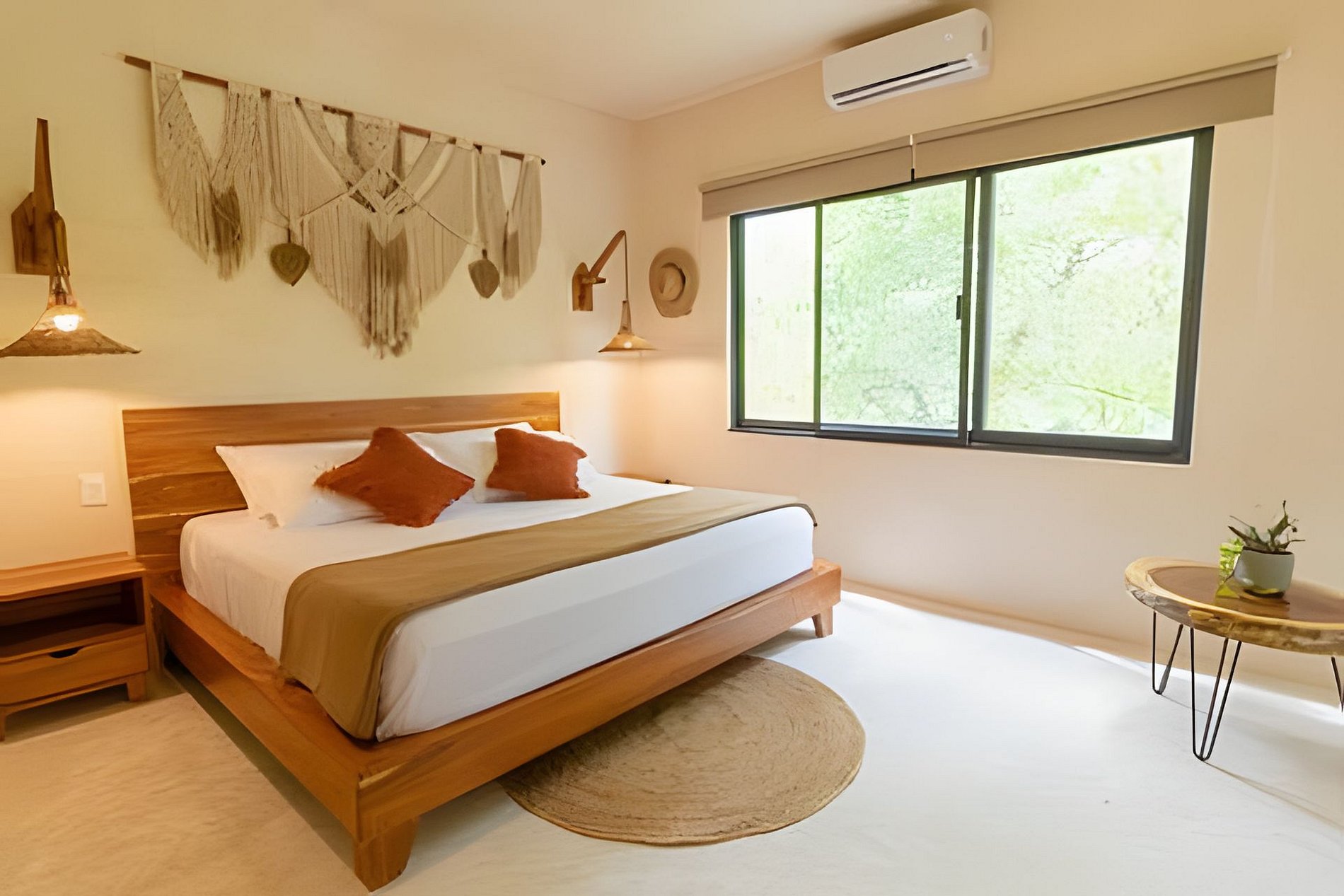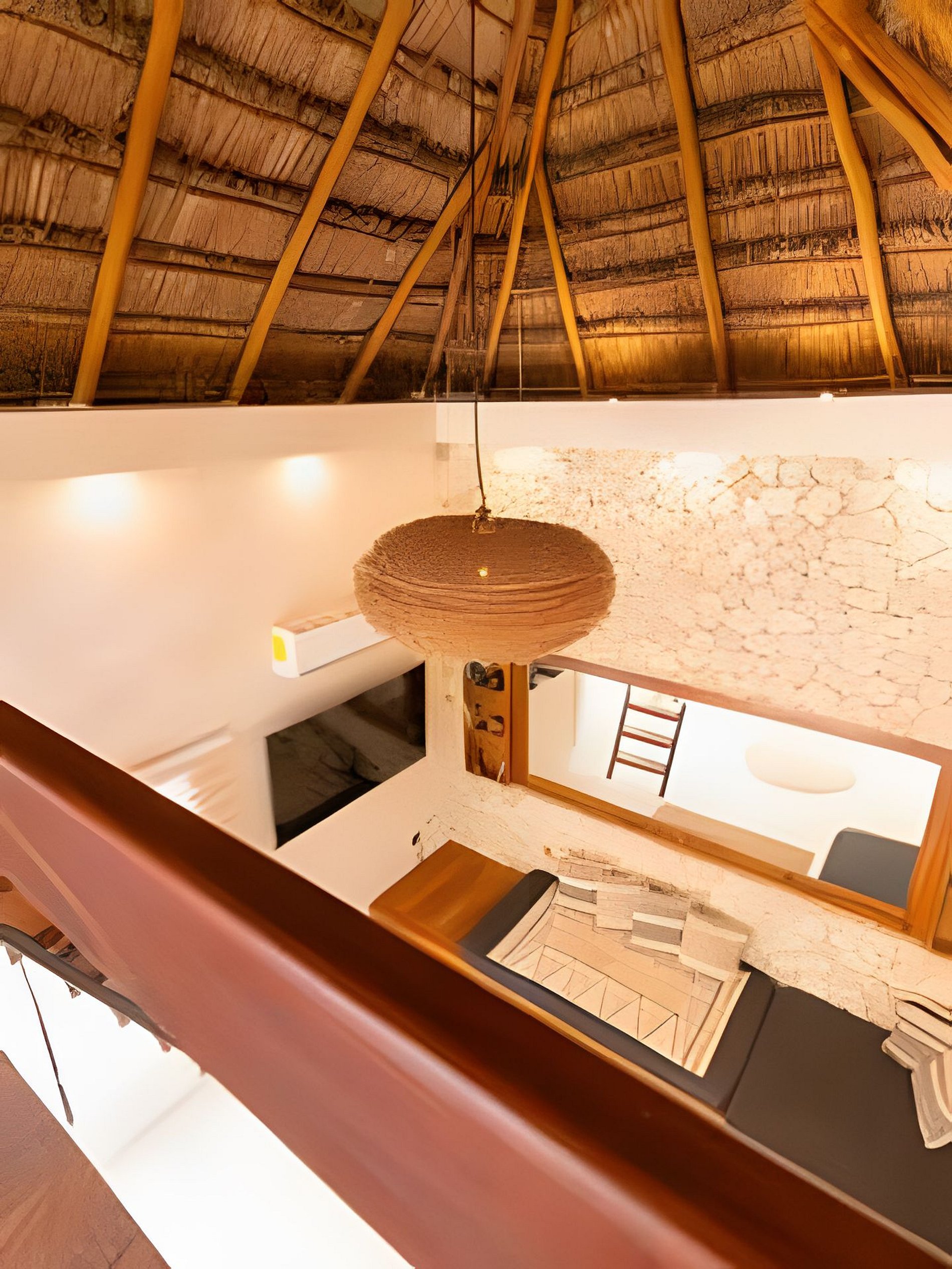 Este departamento cuenta con dos habitaciones totalmente equipadas, la habitación principal cuenta con una cama king size, A/C y baño privado completo con tina. La segunda habitación cuenta también con una cama king size, A/C y comparte el baño completo con tina con las áreas comunes. La cocina está totalmente equipada, refrigerador, microondas, vajilla, electrodomésticos y cristalería. En la estancia puedes disfrutar de una doble altura con techo de palapa, lo que le proporciona al departamento mucha frescura, cuenta con A/C, además de tener acceso directo a una terraza y a un tapanco pensado para actividades de yoga y meditación. La estancia cuenta con dos sillones que pueden ser utilizados como cama individual cada uno.