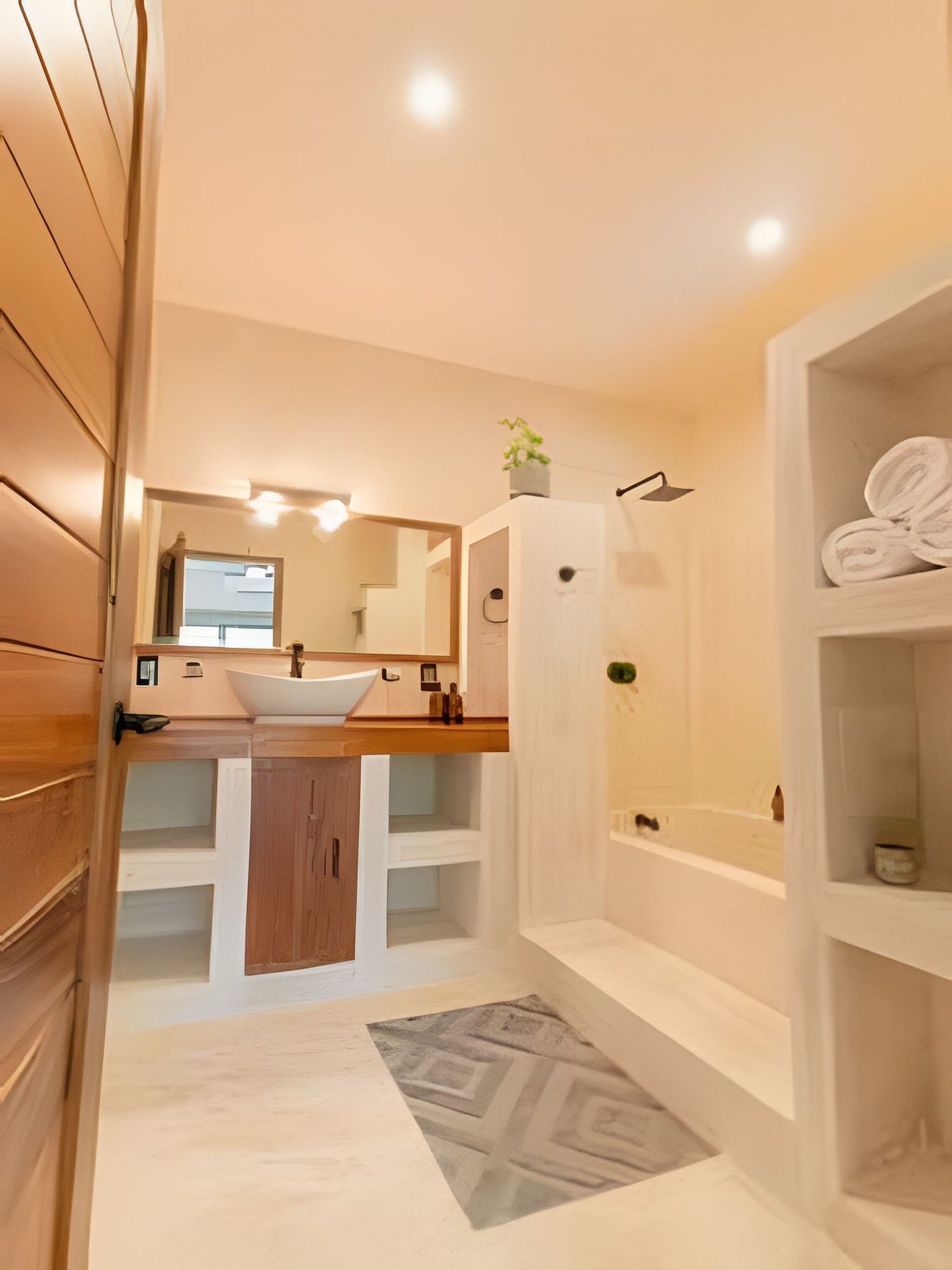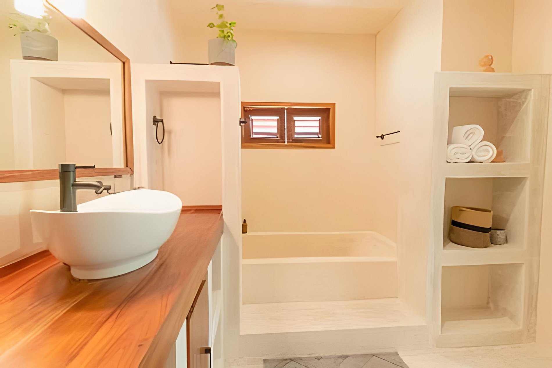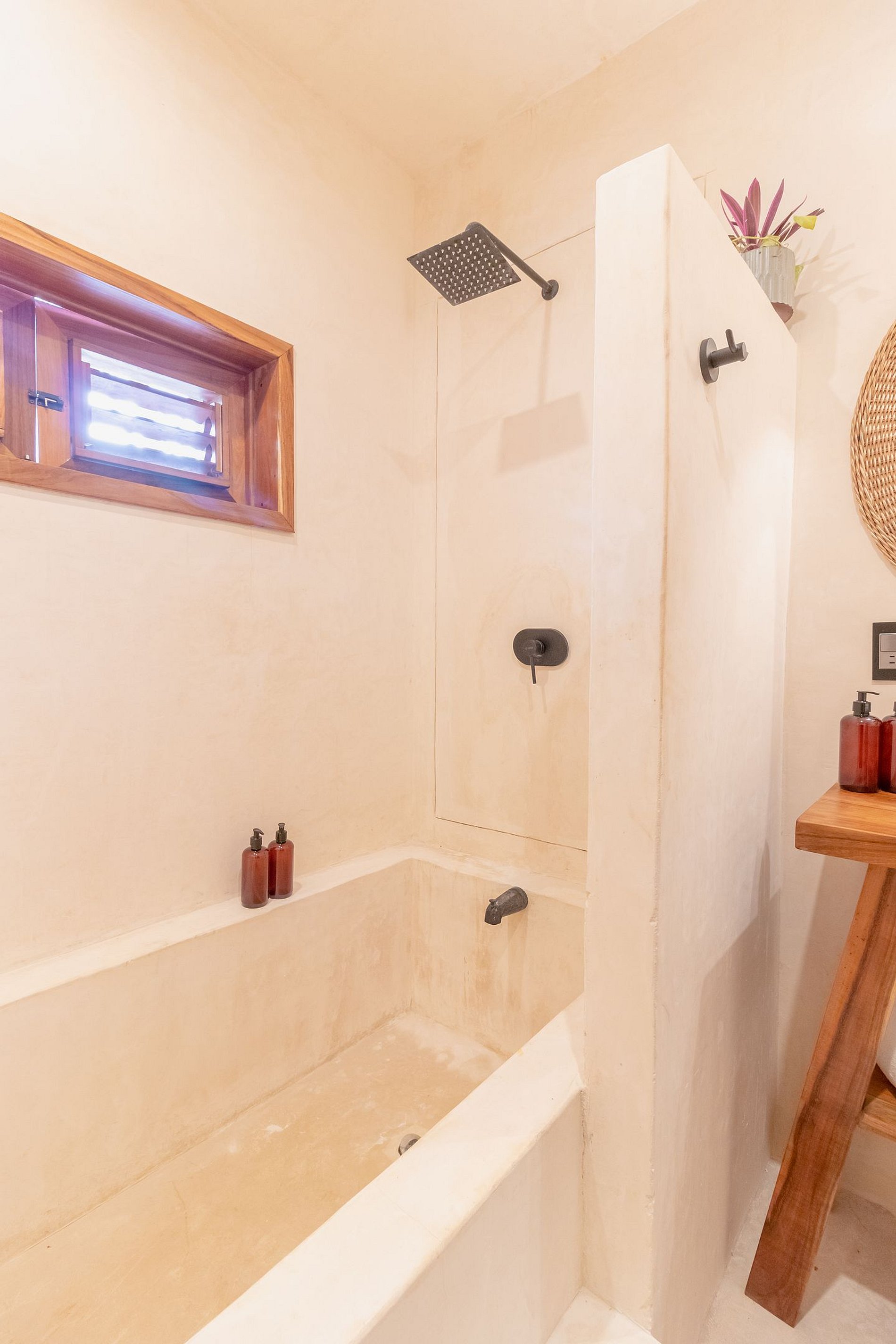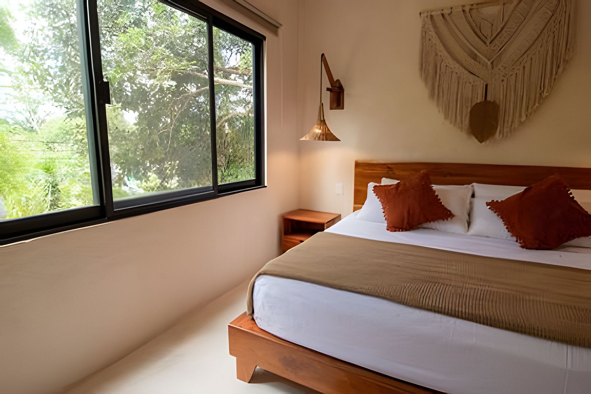Este departamento cuenta con dos habitaciones totalmente equipadas, la habitación principal cuenta con una cama king size, A/C y baño privado completo con tina. La segunda habitación cuenta también con una cama king size, A/C y comparte el baño completo con tina con las áreas comunes. La cocina está totalmente equipada, refrigerador, microondas, vajilla, electrodomésticos y cristalería. En la estancia puedes disfrutar de una doble altura con techo de palapa, lo que le proporciona al departamento mucha frescura, cuenta con A/C, además de tener acceso directo a una terraza y a un tapanco pensado para actividades de yoga y meditación. La estancia cuenta con dos sillones que pueden ser utilizados como cama individual cada uno.