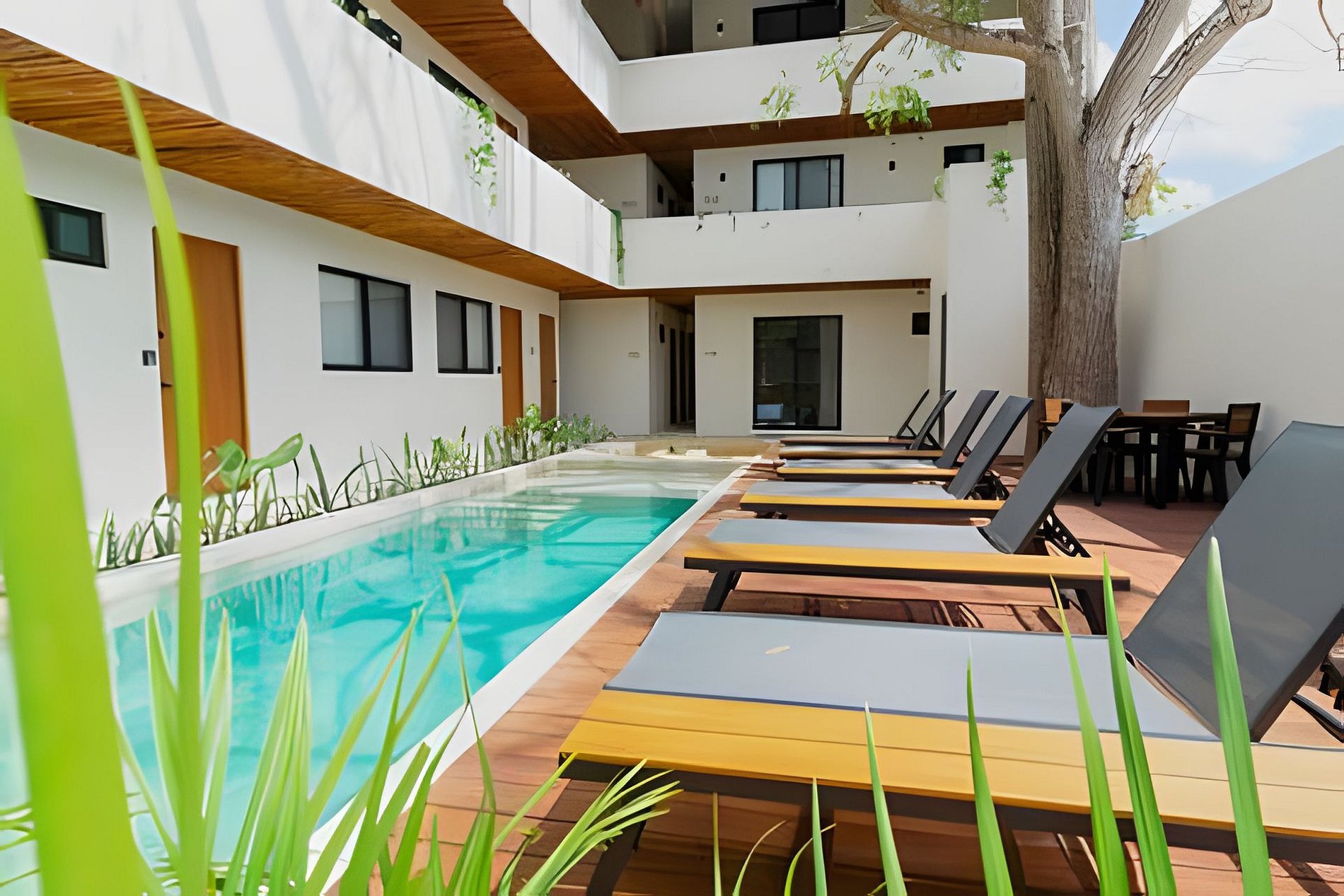 Disfruta tus días en bacalar hospedándote en este hermoso departamento pensado para que te sientas como en casa! Equipado totalmente para tu comodidad y complementado con una gran alberca, camastros y mesas para compartir momentos únicos en los espacios comunes. Sentirte tranquilo y seguro, harán que tu experiencia sea única e inolvidable. Este departamento es el 04 y se encuentra en planta baja.