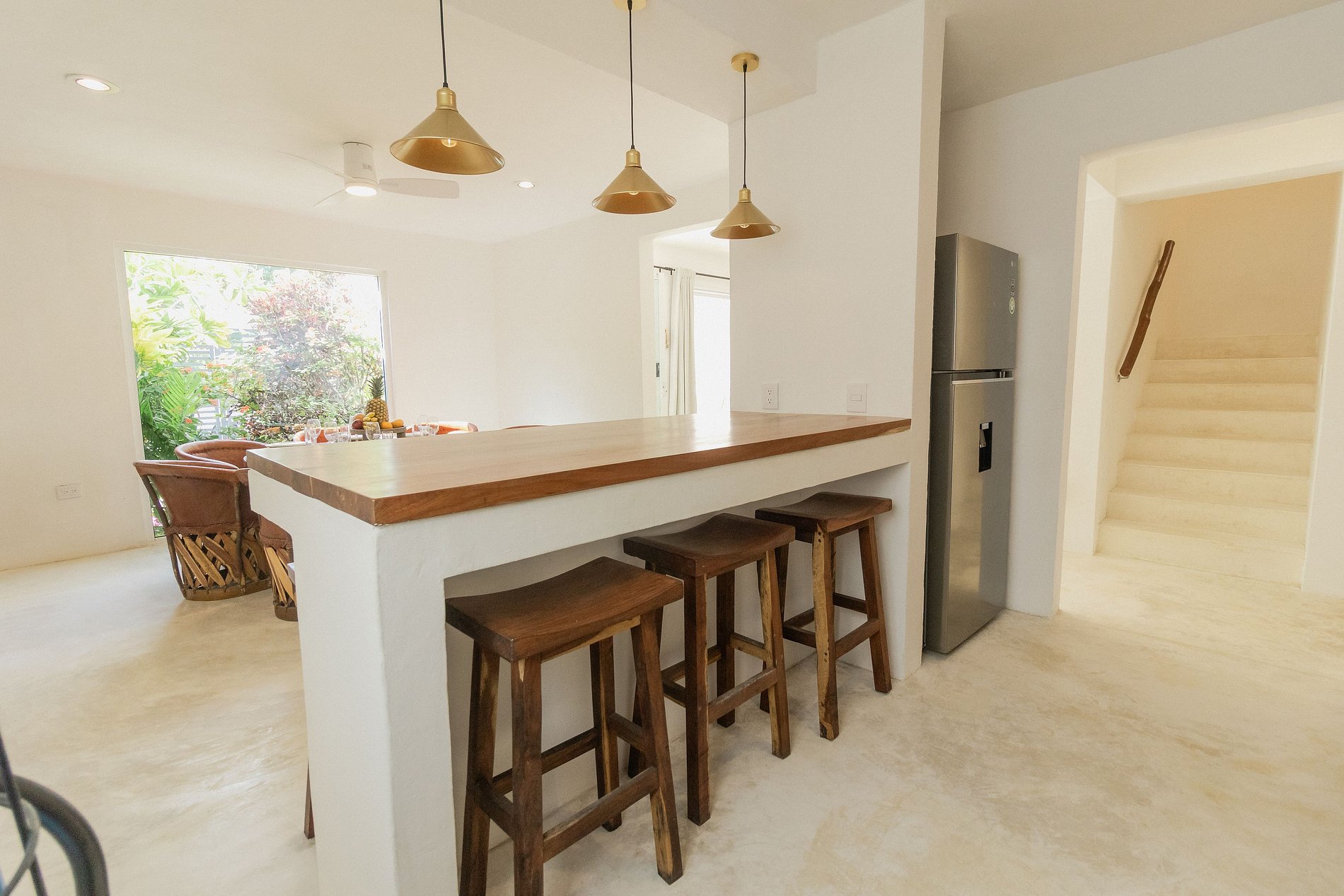 REGLAMENTO HORARIOS DE CHECKIN , CHECK OUT, PERSONAS EXTERNAS El horario de Ingreso es a partir de las 3PM- Ingresar antes de este horario sin autorización es conciderado una falta al Reglamento y podría generar costos extras. El ingreso anticipado es sujeto a disponibilidad y debe estar solicitado previamente. El horario de SALIDA es como máximo a las 12PM ya que personal de limpieza debe ingresar para dejar listo el departamento para los siguientes huéspedes. La salida posterior a este horario sin autorización es conciderado una Falta al reglamento ya que afecta la operación de la propiedad. El costo por salída despés de las 12:20 y antes de la 1PM tiene un Costo de 600mxn. Puede solicitar autorización de Late check out, pero es sujeto a la disponibilidad. 1- Mantenga sus puertas y ventanas cerradas cuando salga del departamento 2-OBJETOS DE DECORACIÓN La casa cuenta con objetos de decoración de gran calidad y valor, en caso de pérdida, robo o rotura se cobrará según el valor asignado a cada pieza. 3- TOALLAS - Se hará un cargo de $600 MX pesos por cada toalla perdida o manchada. 4 AIRE ACONDICIONADO: Apague cuando salgan de la habitación o del departamento. Están en un área de conservación, por lo que se agradece su apoyo. 5-El agua del grifo no es potable. Usted cuenta con agua potable en un garafón 6-A partir de las 12:00 de la noche se requiere la suspensión de musica o ruido a alto volumen. PET FRENDLY Cualquier detalle de limpieza o daño que pudiera derivarse de la estancia de la mascota tendrá cargo extra ( Ej: Pelos en sillones, cojines o camas, muebles maltratados, manchas en paredes, mosquiteros arañados) Ayúdenos llevando sus bolsitas para desechos y no dejando a su mascota sola en el departamento .